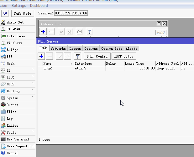 2.接下来我们为ether5网卡设置一个内网IP做为网关,并设好DHCP服务器: