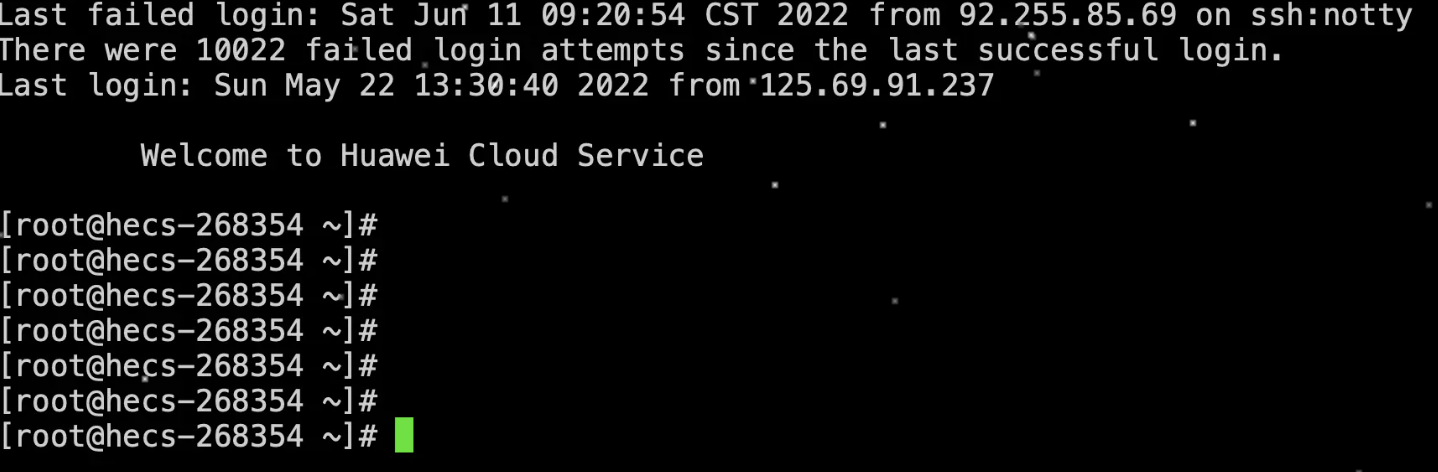 比如上图,在登录时可以发现,系统提示自上一次登录成功后,系统有10022次失败的登录,说明有人(机器)在不断尝试登录我们的服务器。