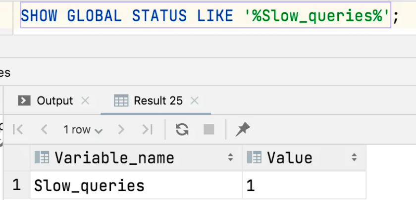 SHOW GLOBAL STATUS LIKE '%Slow_queries%';