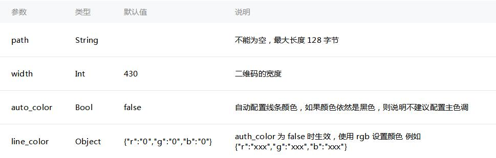 注意:通过该接口生成的小程序二维码,永久有效,数量限制见文末说明,请谨慎使用。用户扫描该码进入小程序后,将直接进入 path 对应的页面。