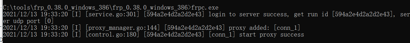 然后在当前目录运行cmd,在cmd中运行frpc.exe即可
