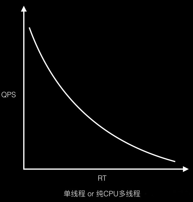 多线程场景,如果把服务端的线程数提升到2,那么整个系统的QPS则为 2*(1000/80) = 25,可见QPS随着线程的增加而线性增长,那QPS上不去就加线程呗,听起来是这个道理,但是往往现实并非如此。