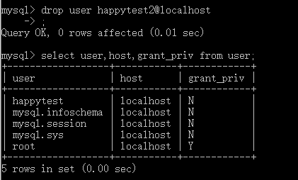 drop user happytest@localhost;