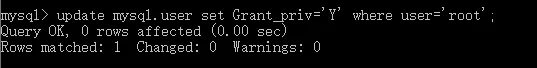 update mysql.user set Grant_priv='Y' where user='root';