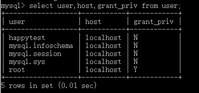 select user,host,grant_priv from mysql.user;