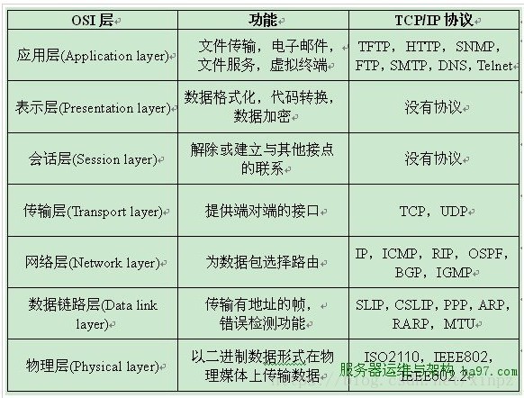 1、物理层:该层包括物理连网媒介,如电缆连线连接器,物理层的协议产生并检测电压以便能够发送和接受携带数据的信号。如中继器、集线器、网线、HUB。
