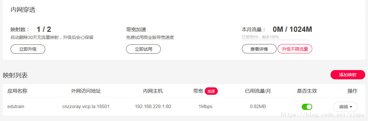 NATAPP基于ngrok的国内内网穿透服务,免费版会强制更换域名,临时用一下可以