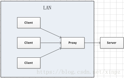 反向代理中,proxy和server同属一个LAN,对client透明。