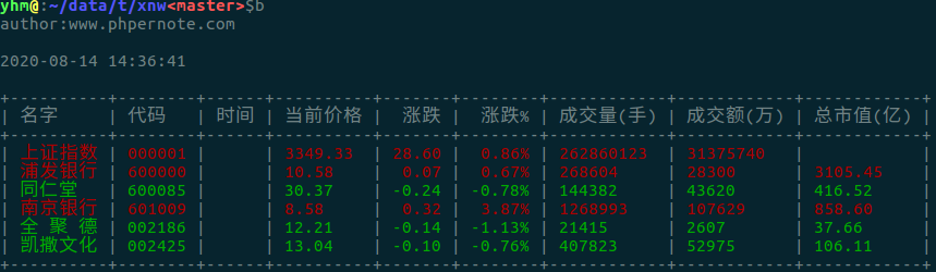当然这里读取只是当前的股价,不会实时变化的,如果需要动态监视股价变化,可以配合 watch 命令,例如: