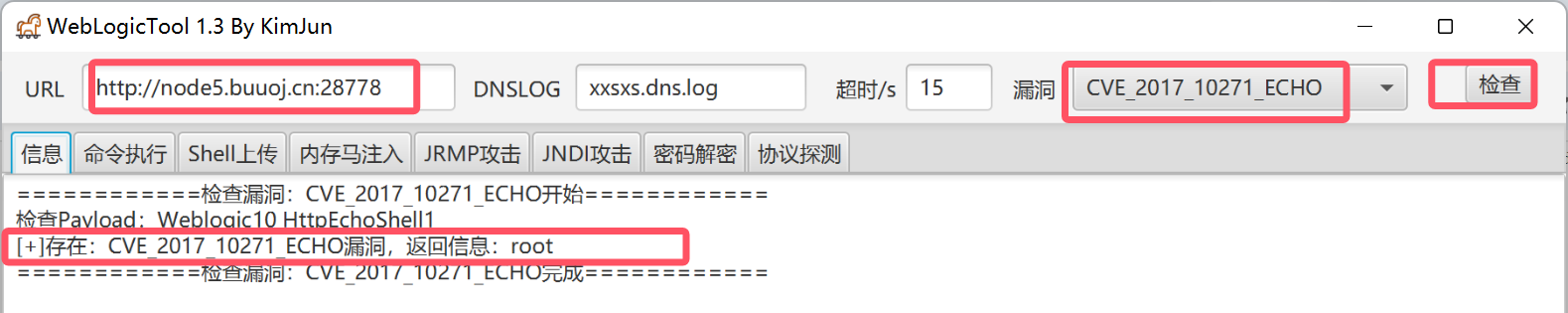1、工具检查,靶场存在CVE-2017-10271漏洞。