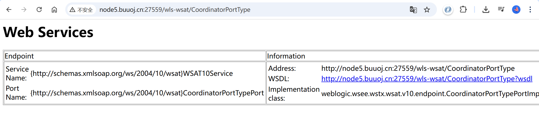 2、初步判断:访问 http://node5.buuoj.cn:27559/wls-wsat/CoordinatorPortType,存在下图则说明可能存在漏洞。