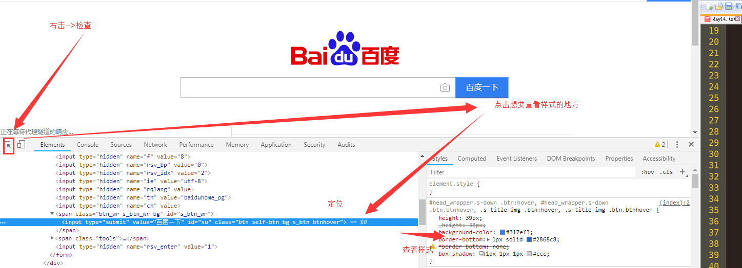 10.chorme审查元素的使用:1.定位 2.查看样式。