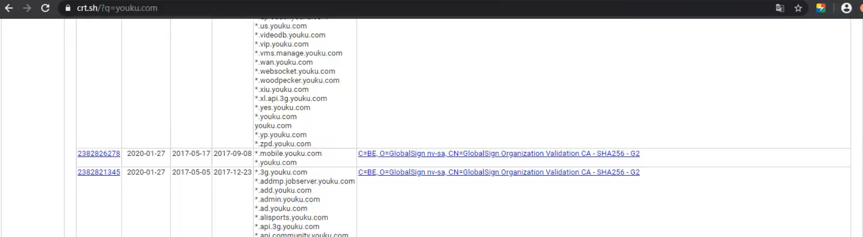 查询子域名和证书 https://crt.sh