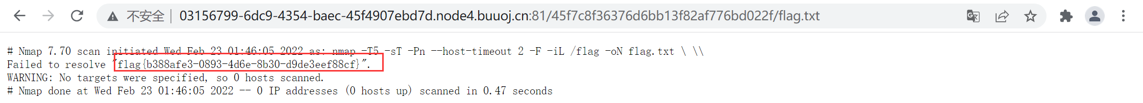 执行payload,将根目录下的flag文件内容作为扫描目标,并将扫描结果重定向到flag.txt文件中,该文件在下图所示的文件夹内