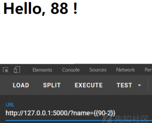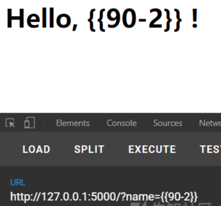 我们再进行测试:可以看到,我们输入的内容被服务器渲染然后输出,形成SSTI模板注入漏洞。