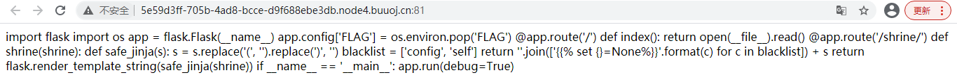 打开发现给出源码-pytho&flask&ssti-代码分析访问参数,flag位置,过滤等-不能进行正常的路径符合-采用内置函数读取-读取代码中的存储FLAG