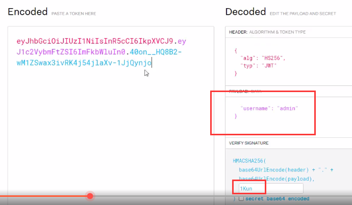 <7>将username值改为admin,使用秘钥重新生成JWT,成功登录admin账户。