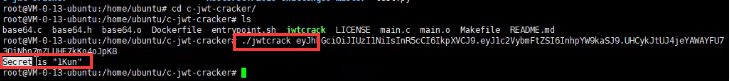<6>由于目前我们登录的是普通用户,此时可以尝试垂直越权。观察数据包,发现会话使用的JWT,尝试使用c-jwt-cracker工具爆破JWT秘钥,成功得到秘钥。