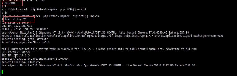 之后一旦有人访问了系统,它就会在/tmp/目录下生成一个log日志。