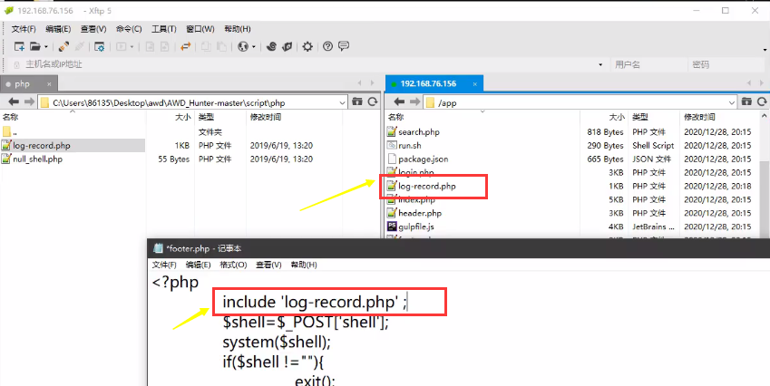 上传文件监控脚本log-record.php,该脚本需要在网站配置文件footer.php中包含一下,否则无法正常调用运行。