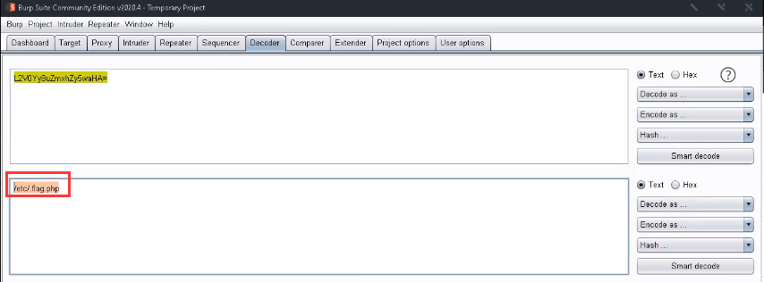 <17>该字符串是base64编码,再将其base64解码,成功得到flag地址:/etc/.flag.php