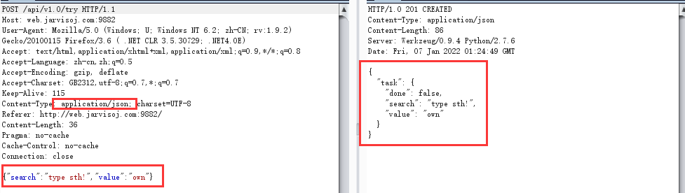 抓包如下,数据包使用的是json格式,此处使用盲猜的方法检测是否存在xxe漏洞。