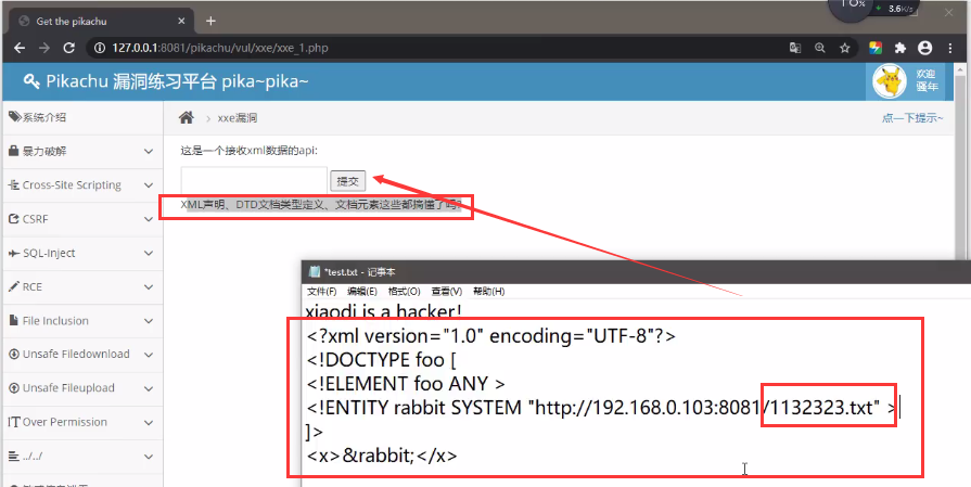- 案例1:pikachu靶场XML数据传输测试-回显,玩法,协议,引入