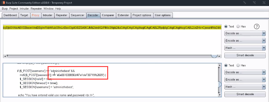 <10>base64解码源代码后,分析,成功找到用户名密码。