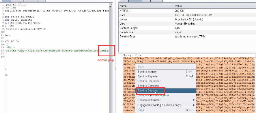 <9>将xxe.php改为admin.php,成功读取admin.php源码
