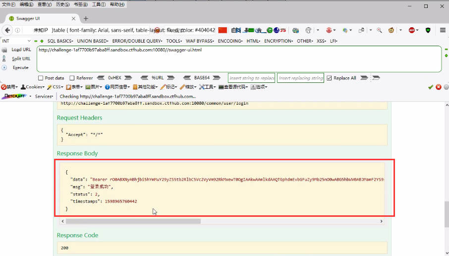 如下图所示,接口登录测试