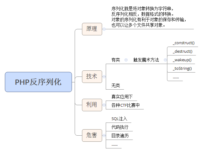 原理:未对用户输入的序列化字符串进行检测,导致攻击者可以控制反序列化过程,从而导致代码执行,SQL注入,目录遍历等不可控后果。