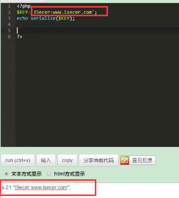 //输出结果:a:3:{s:1:"a";s:5:"Apple";s:1:"b";s:6:"banana";s:1:"c";s:7:"Coconut";}