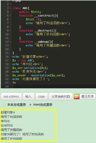 $obj = unserialize($str); //反序列化,所以要先序列化。