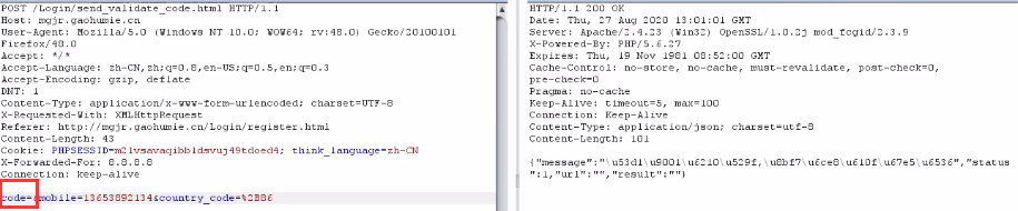 第一次输入正确的验证码成功后,抓包,将验证码字段值设置为空,可以一直向手机发送短信。