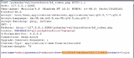 绕过方法:可以重放两个请求,从第一个请求响应中取token值,放到第二个请求(登录请求)中,对登录进行暴力破解。、