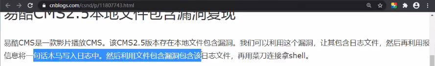 <2>在网上搜索易酷CMS是否有公开漏洞,搜到有本地文件包含漏洞。