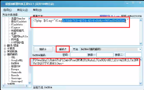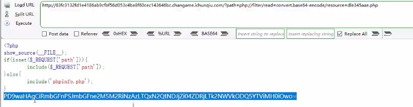 <1>php://filter读取文件源码,结果base64编码,需要自行解码。