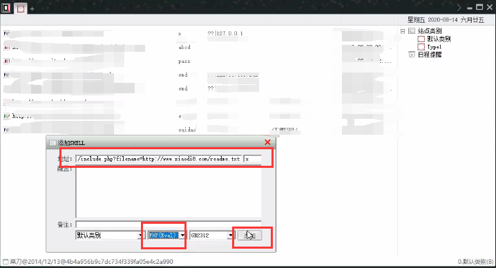 则可以利用文件包含漏洞执行使用菜刀等工具连接目标服务器。