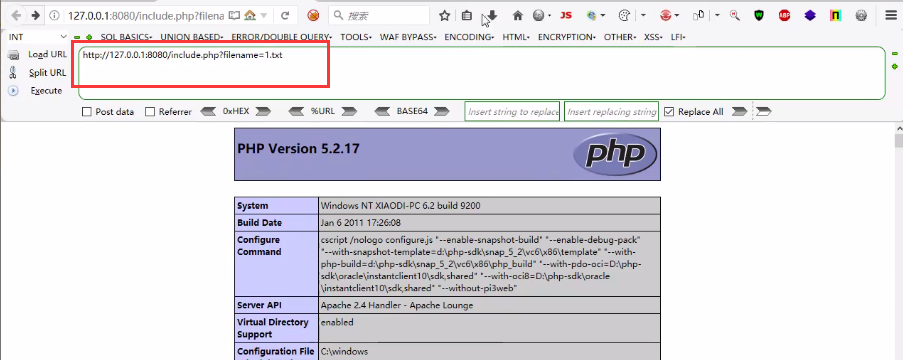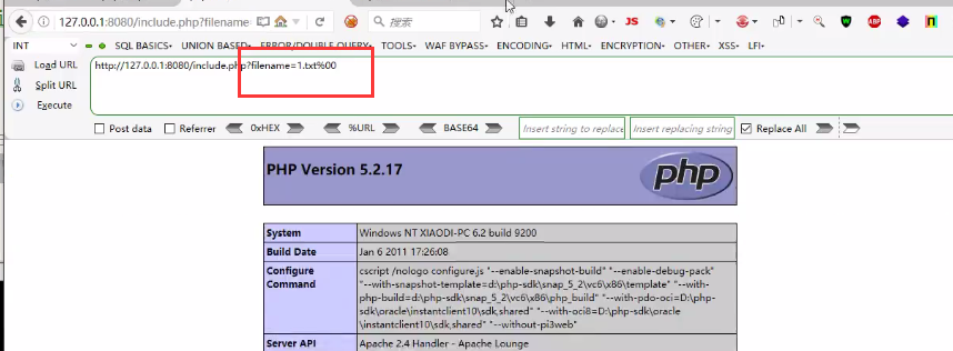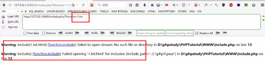 http://127.0.0.1:8080/include.php?filename=file:///D:/phpstudy/PHPTutorial/WWW/1.txt
