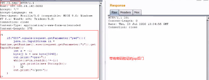 所以我们即使可以PUT一个文件到服务器但也无法直接PUT以jsp,jspx结尾文件,因为这些这些后缀的文件都是交由JspServlet处理的,它没法处理PUT请求。