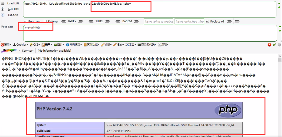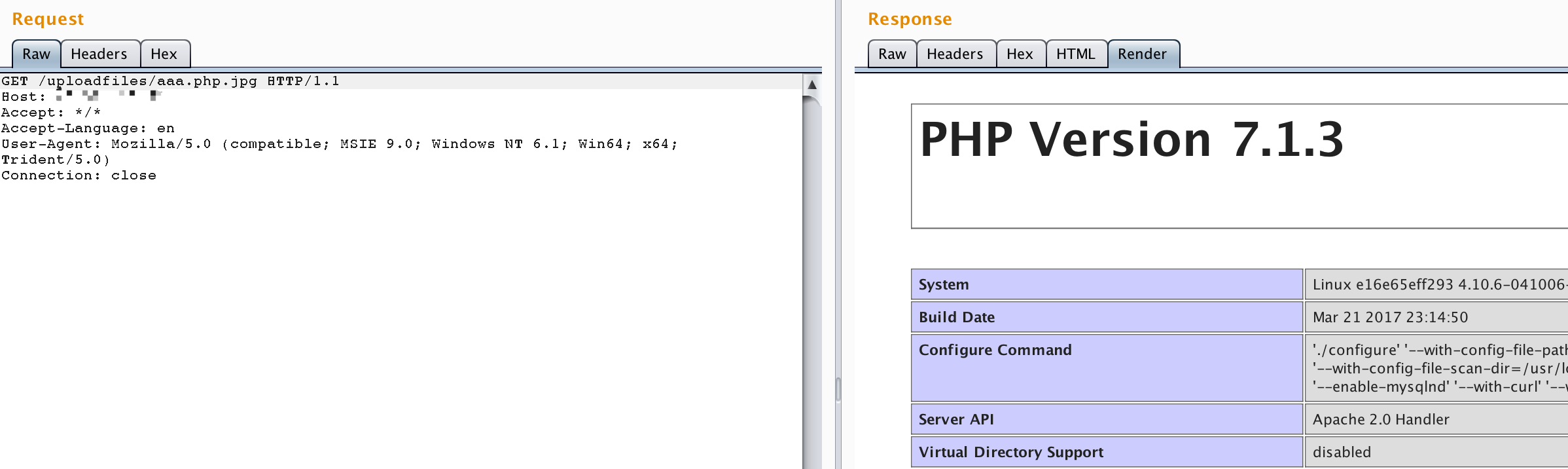 环境运行后,访问http://your-ip/uploadfiles/apache.php.jpeg即可发现,phpinfo被执行了,该文件被解析为php脚本。