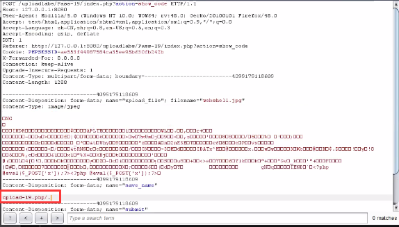 也可以用另一种思路,save_name值改为“upload-19.php/.”,绕过黑名单,上传到服务器后保存为upload-19.php。