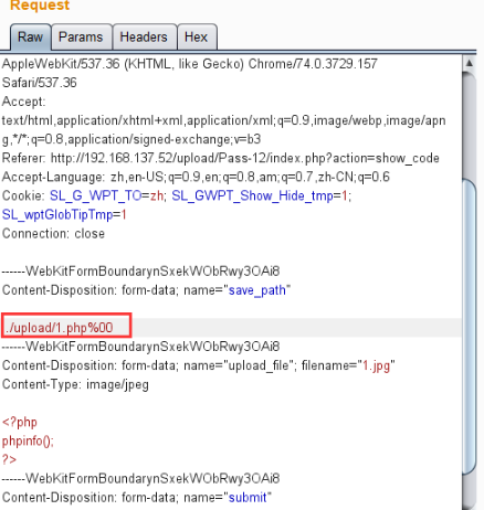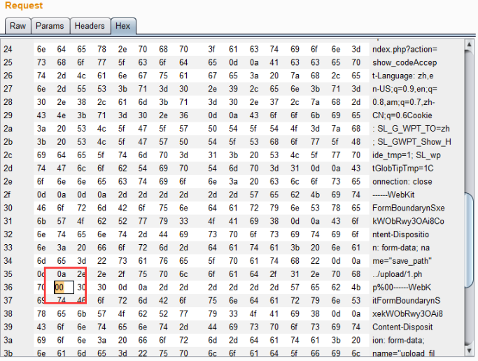 还是利用%00截断,因为POST不会像GET对%00进行自动解码,所以需要在二进制中进行修改。