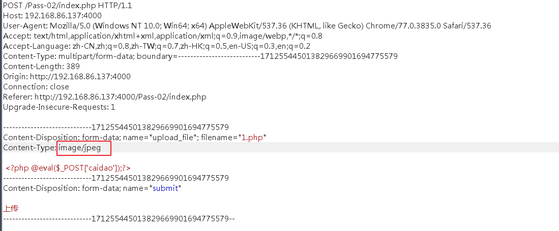 - 每种类型的文件都有自己固定的文件头信息,比如GIF89a是git图片的文件头信息,可以通过手动在脚本文件前面增加文件头的方式绕过。