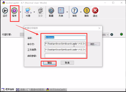 然后,点击程序,选择需要使用该代理的程序。(比如某些程序本身没有代理配置,此时就可以与SocksCap64配合使用代理)