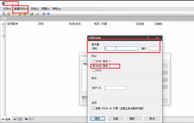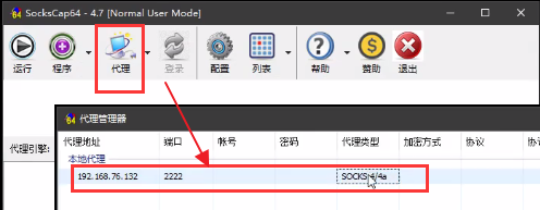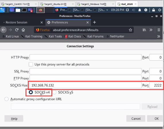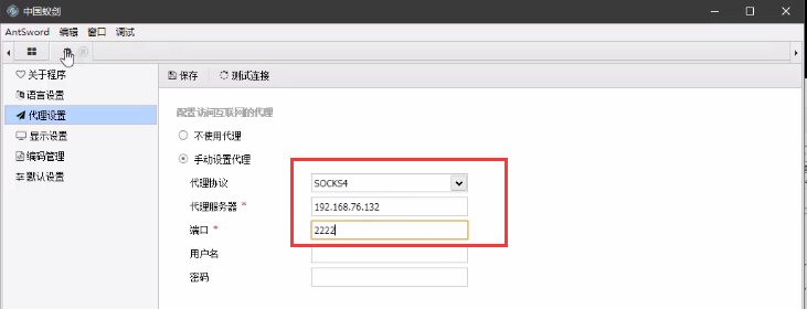 socks4 192.168.76.132 2222(在配置文件中添加)